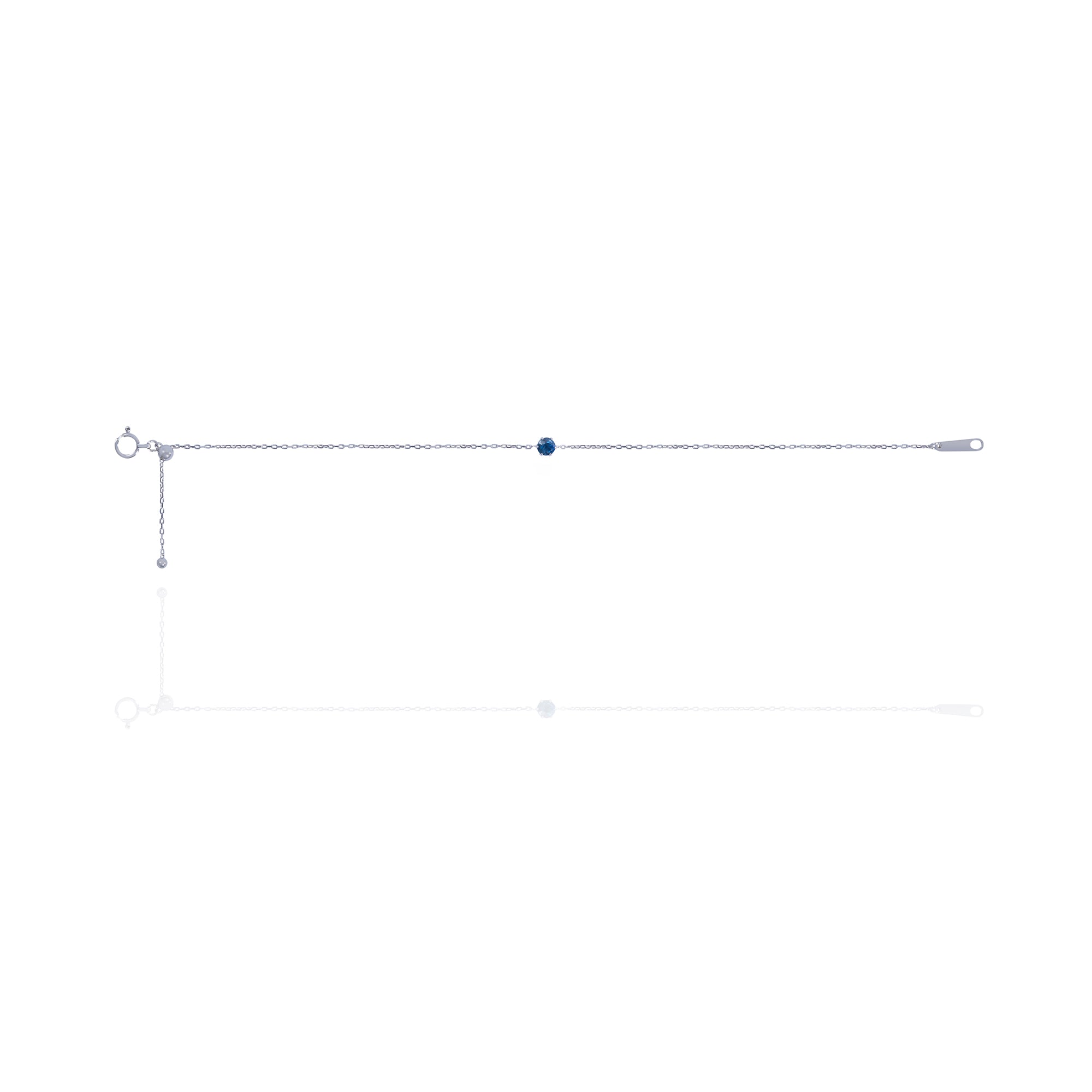 A single sapphire rests delicately along the wrist — quiet yet full of depth, offering a touch of color that feels almost like a secret.