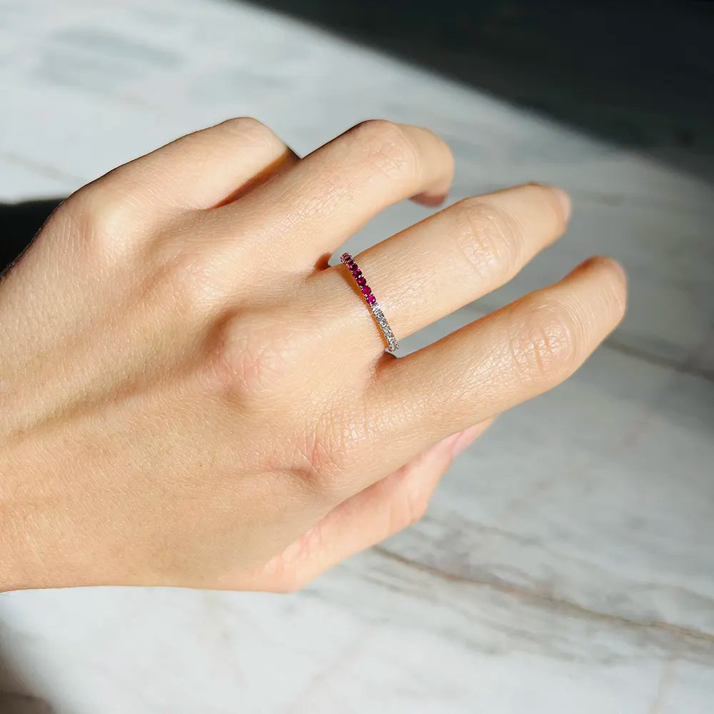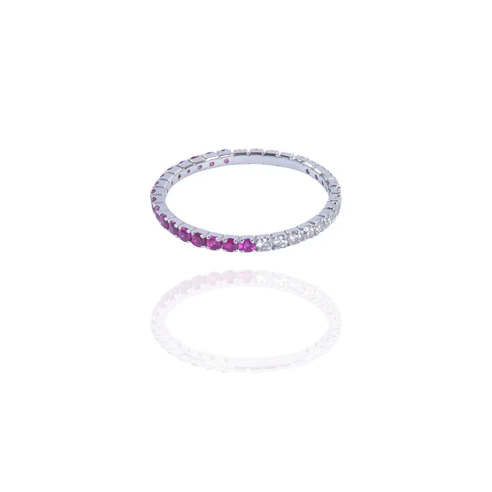 Deep red rubies meet brilliant-cut diamonds in a seamless blend of warmth and light. Crafted in 18K gold, this radiant piece is a Kadel essential designed for everyday use.