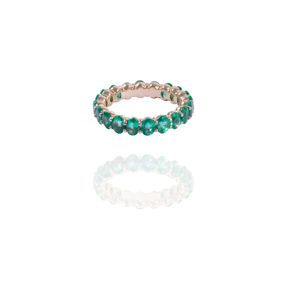 A continuous circle of richly hued oval emeralds, each hand-selected for its color and character, set in an 18K gold eternity band. Designed with a low profile for all-day comfort, this vibrant piece is a must for adding color to your day—radiant, striking, and impossible to overlook.