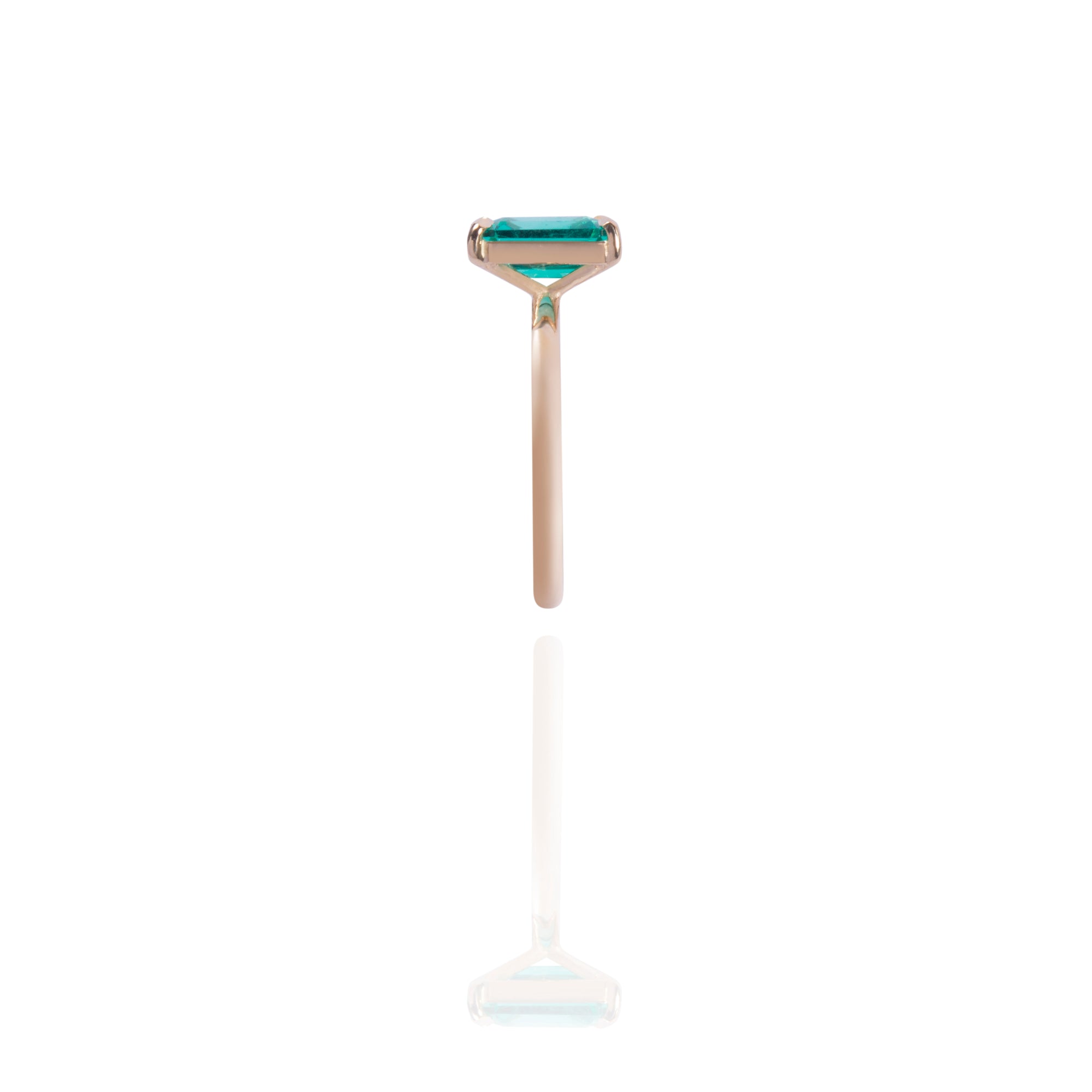 An emerald chosen for its depth and character, held in a clean, modern setting that lets the stone speak for itself.